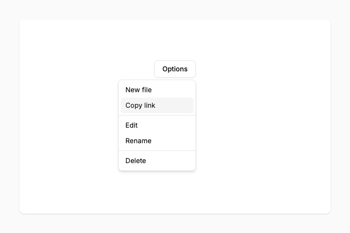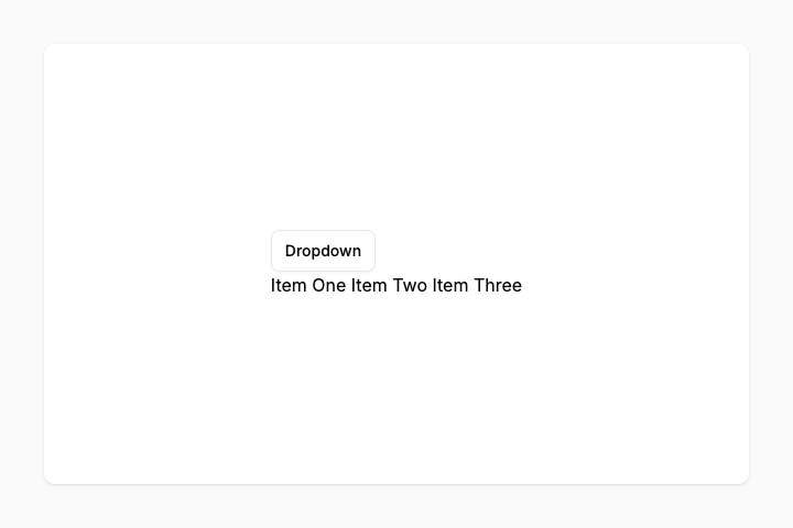 <button class="rounded-md border border-gray-200 bg-white px-3 py-2 text-sm font-medium shadow-xs hover:bg-gray-100 group-focus-within:pointer-events-none">Dropdown</button>